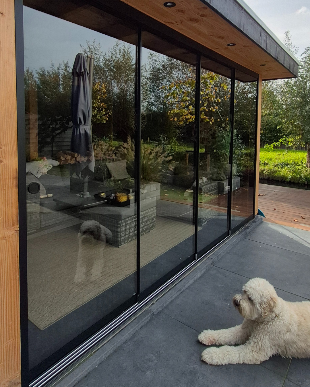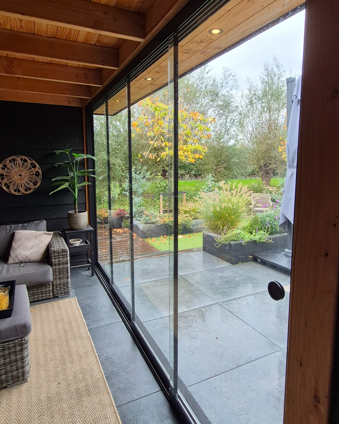 Een glazen schuifwand voor extra warmte