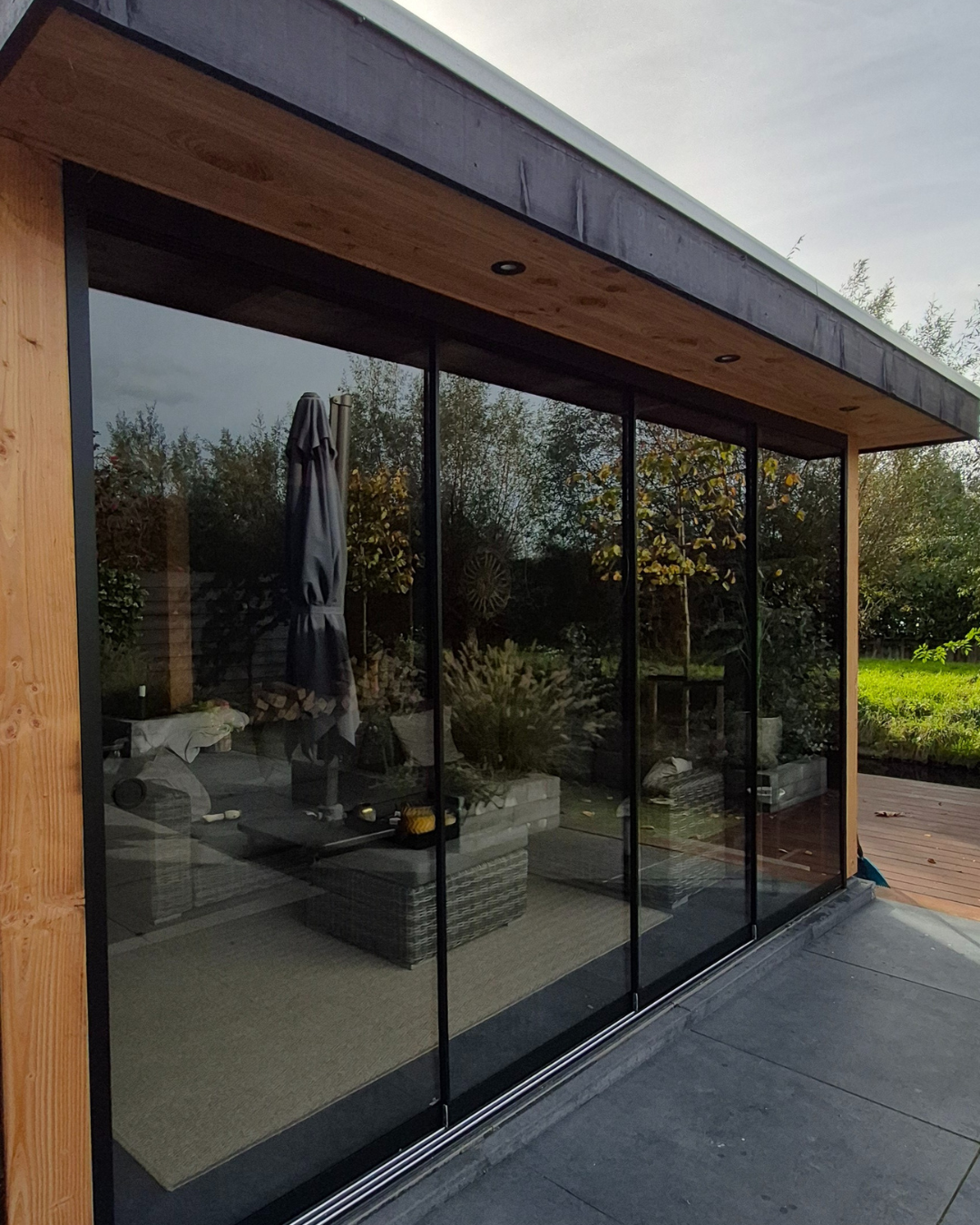 Glazen schuifwand systeem voor overkapping, tuinkamer of veranda