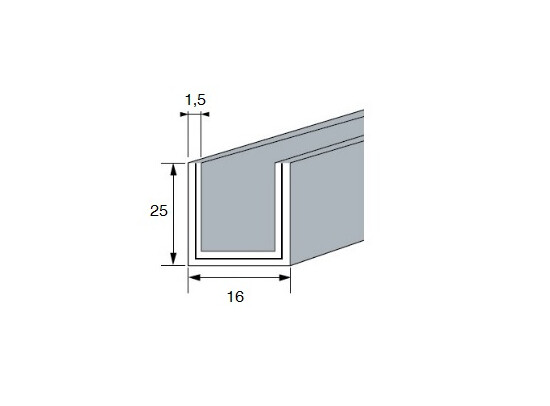 Aluminium U-profiel 25x16x25x1,5 mm L=6000 mm