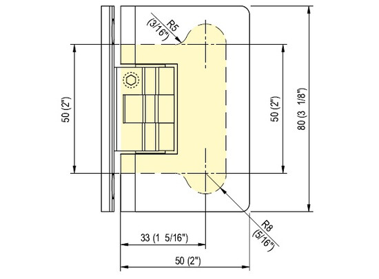 Douchescharnier 8500R wand/glas 180º