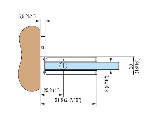 Douchescharnier 8501N glas/glas 180° met verlegde muurplaat