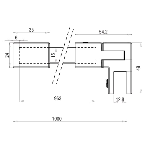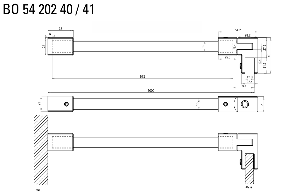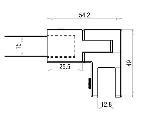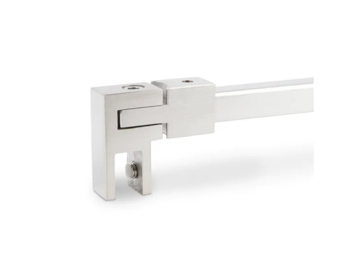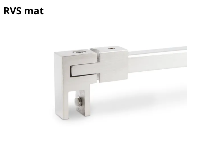 De Square 15 stabilisatiestang zorgt voor een veilige bevestiging van een vast glazen zijpaneel aan de muur. De glasaansluiting wordt eenvoudig bevestigd aan de bovenkant van het glas en kan flexibel in verschillende hoeken worden ingesteld. De verbinding met de muur is stevig en in een rechte hoek van 90°.