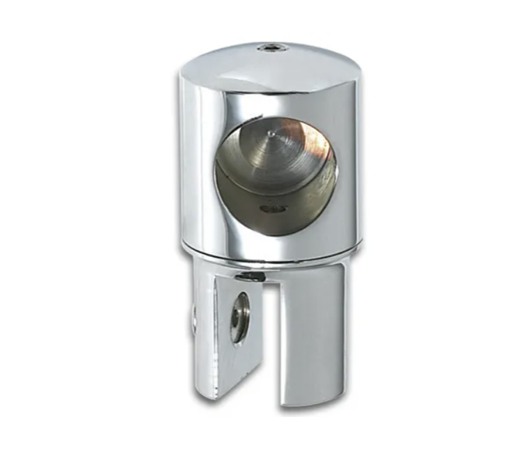Deze set is bedoeld voor de montage van een glazen zijpaneel tegen een vaste wand. De stang wordt bovenop het glas bevestigd en kan in verschillende hoeken worden ingesteld. De verbinding met de wand staat vast en is geplaatst onder een hoek van 45 graden.