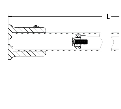 - De stang kan aan één kant van de wandaansluiting ingekort worden