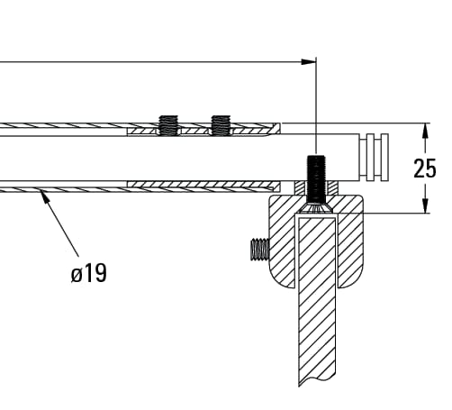 Telescopische stabilisatiestang 90° wand/glas Round 19mm