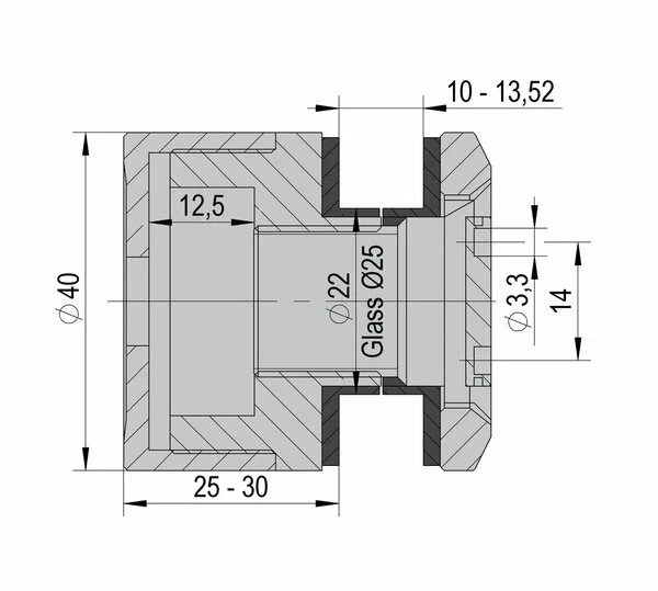 Punthouder / Adapter RVS ø40 of ø50mm met afstandhouder 25 of 40mm / 10 – 21,52mm glasdikte