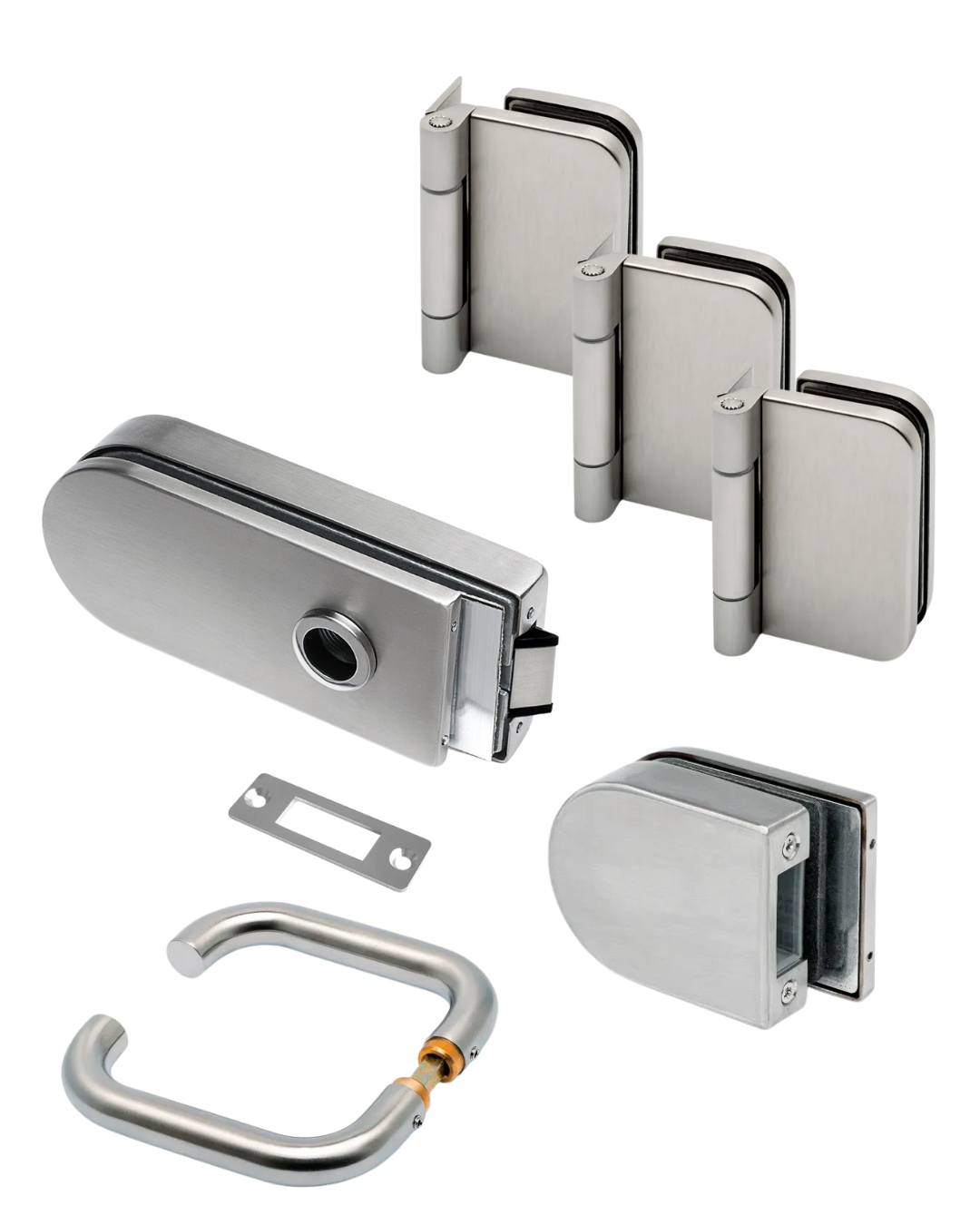 De deurbeslagset Desiree bestaat uit een scharnier, glasdeurslot en deurkruk voor glazen binnendeuren met een glasdikte van 8 tot 10 mm. De onderdelen zijn op elkaar afgestemd en geschikt voor standaard toepassingen bij glasdeuren.