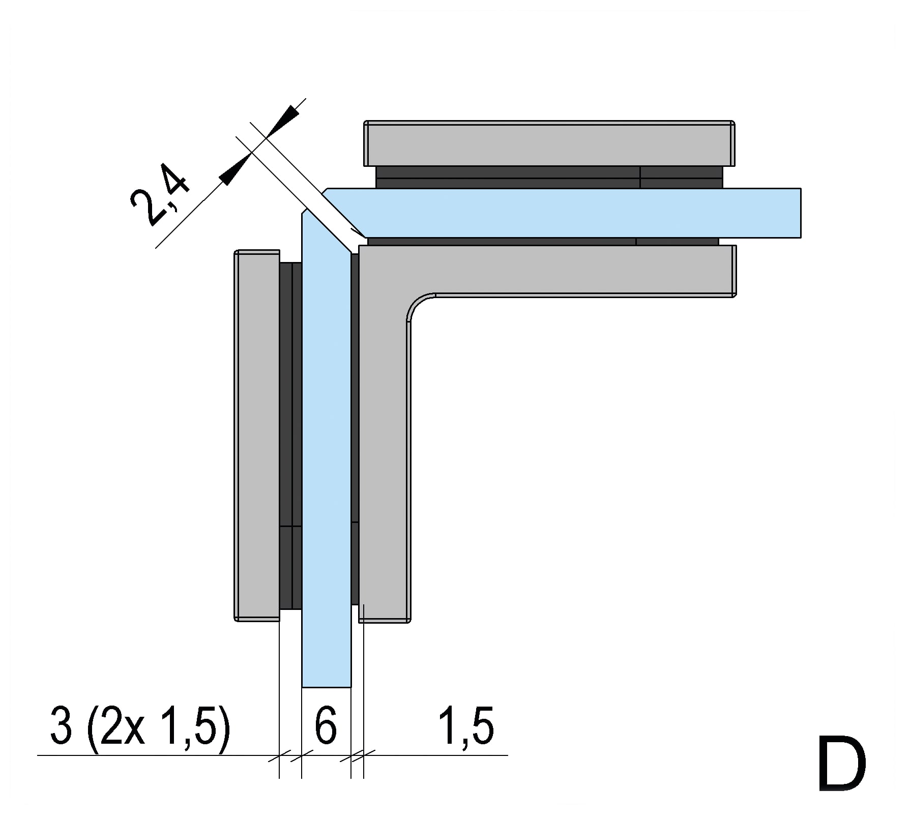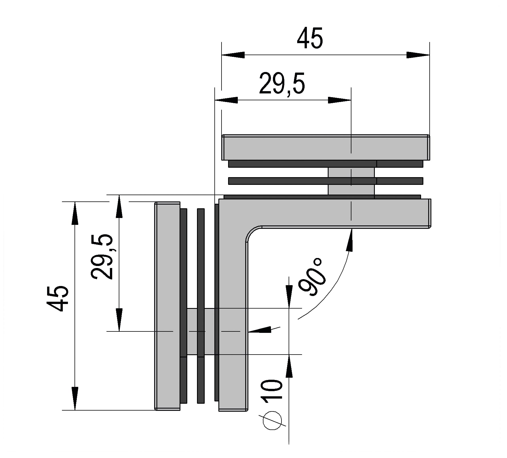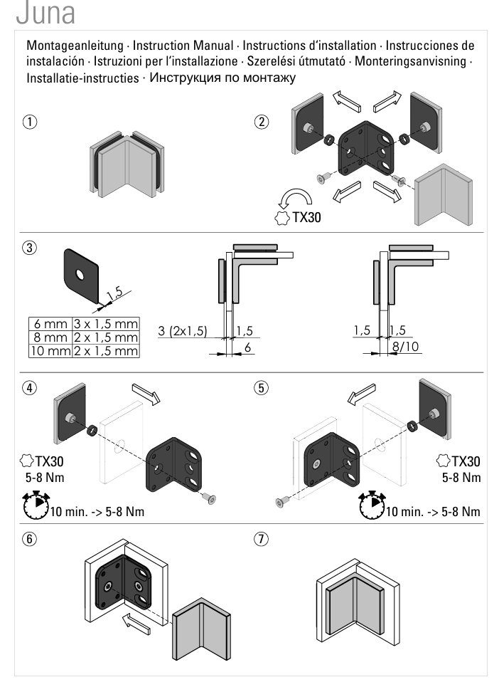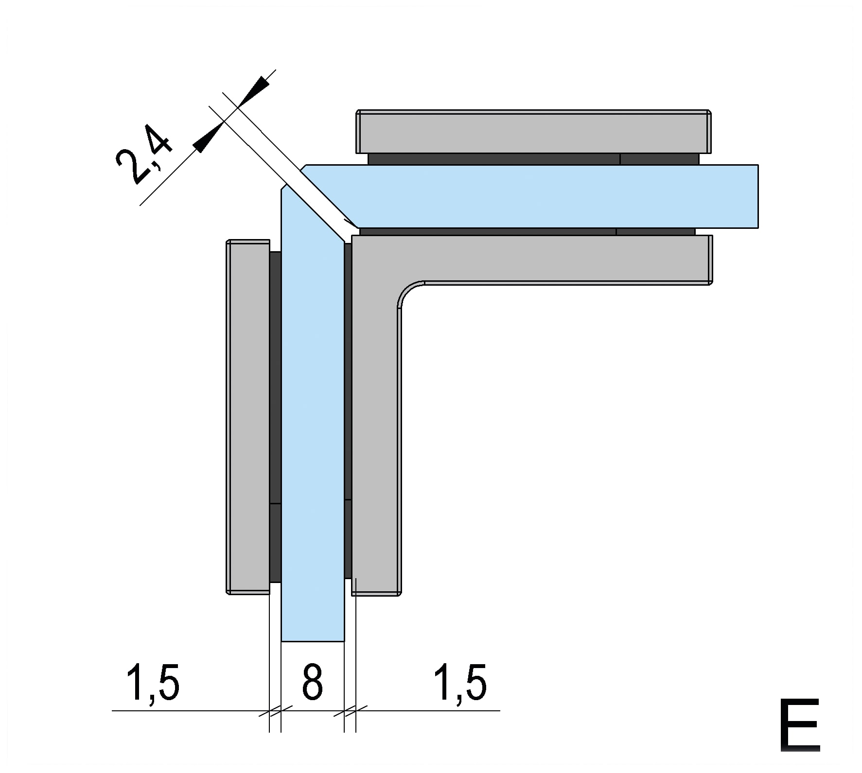 Deze hoekverbinder is bedoeld om twee vaste glazen panelen in een hoek van 90 graden met elkaar te verbinden. Het is een praktische oplossing voor het creëren van een stabiele en strakke glazen structuur in bijvoorbeeld douchewanden of scheidingswanden. De bevestiging is eenvoudig en vereist alleen basisboringen in het glas, wat de montage snel en overzichtelijk maakt.