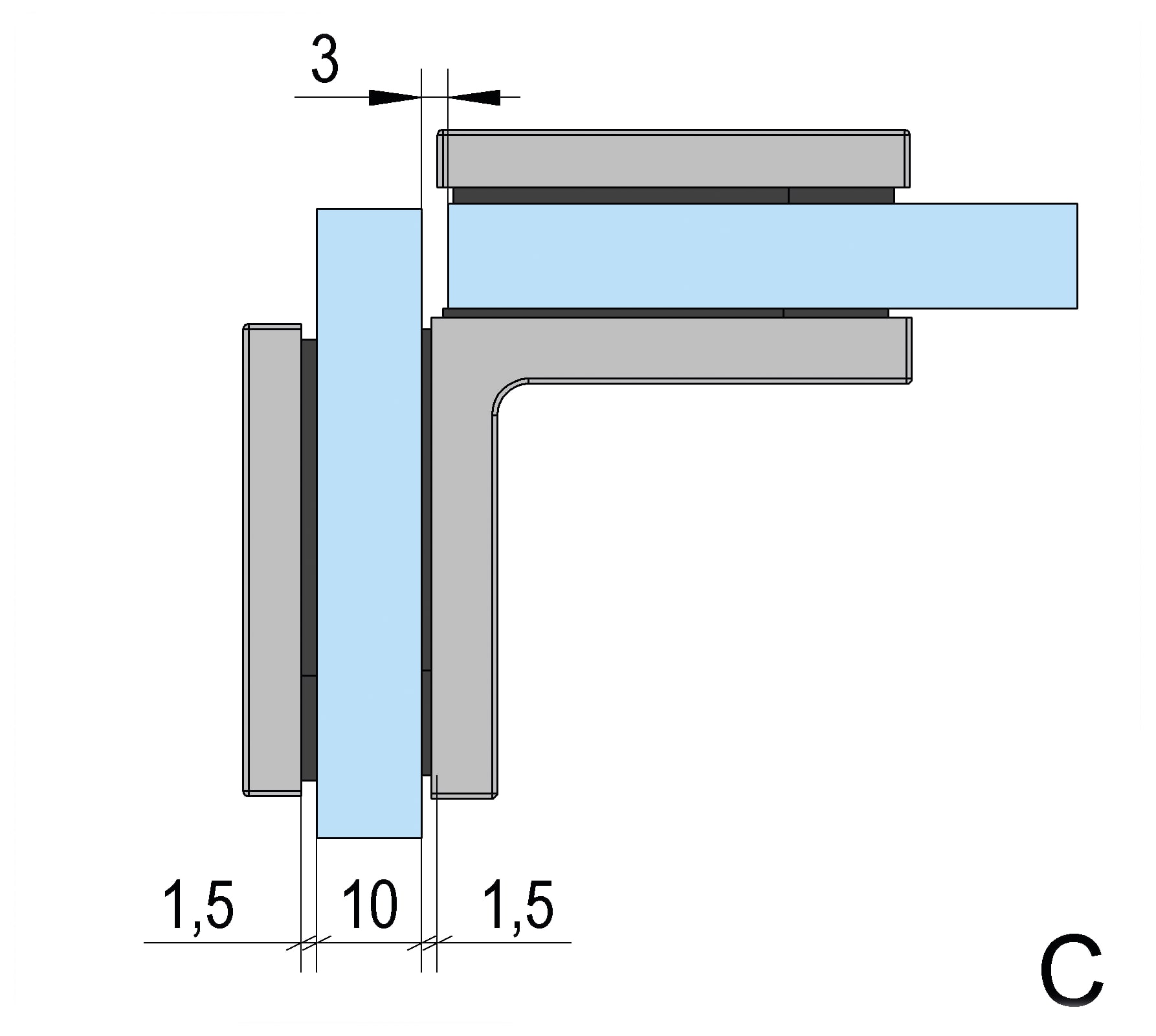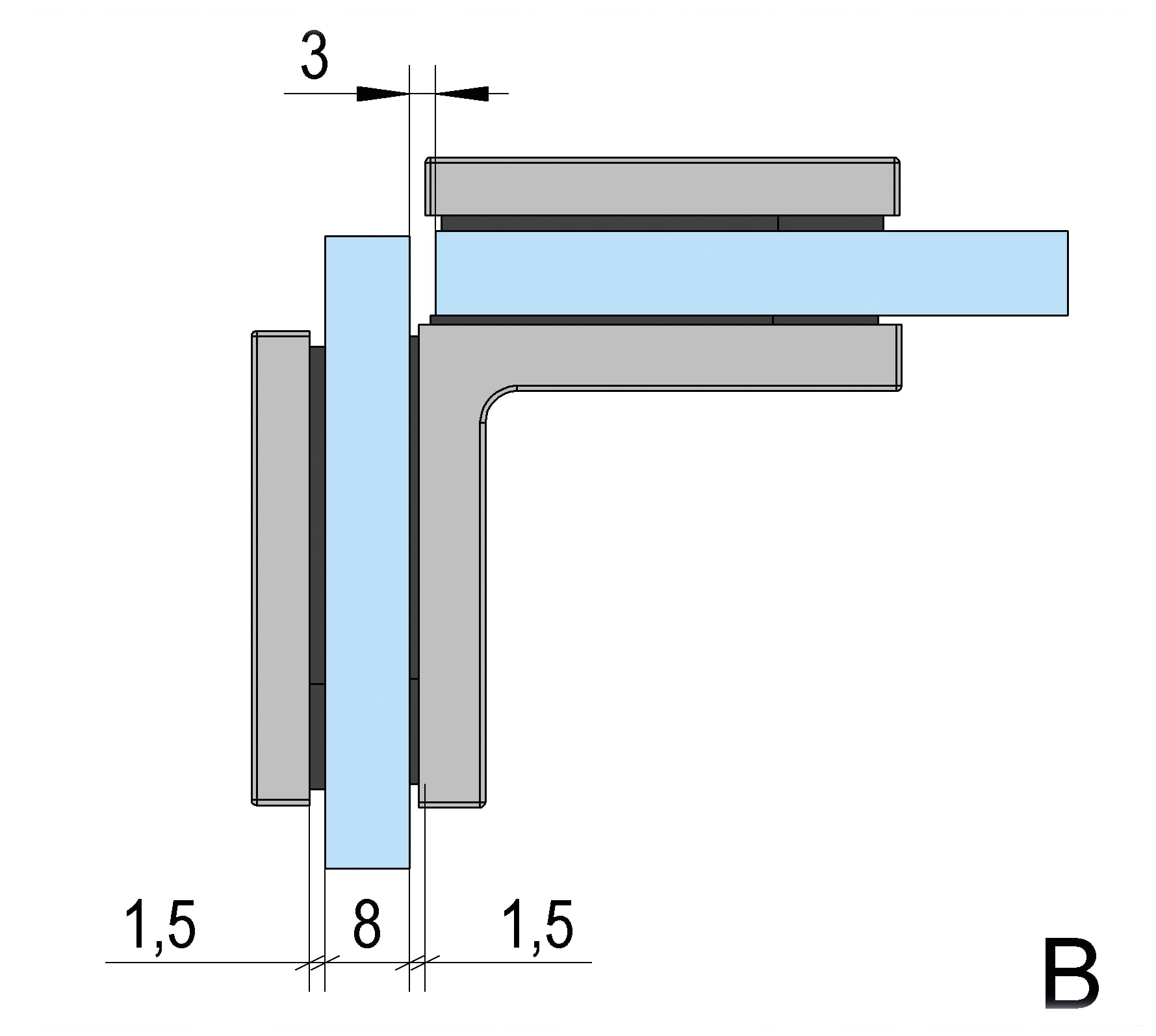 - Glasdikte ESG (enkelvoudig veiligheidsglas): 6 – 10 mm