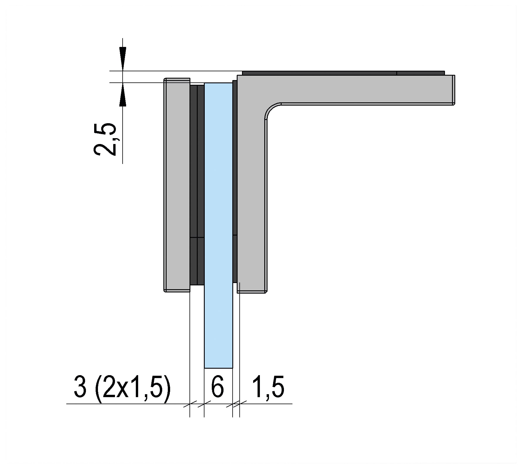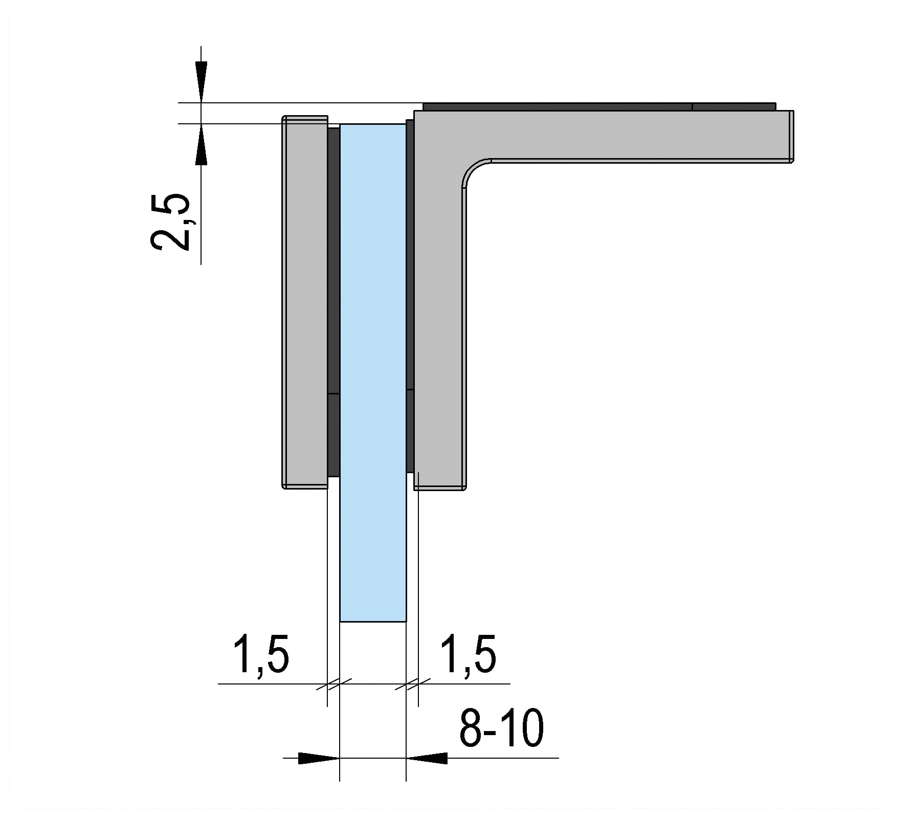 - Glasdikte ESG (enkelvoudig veiligheidsglas): 6 – 10 mm