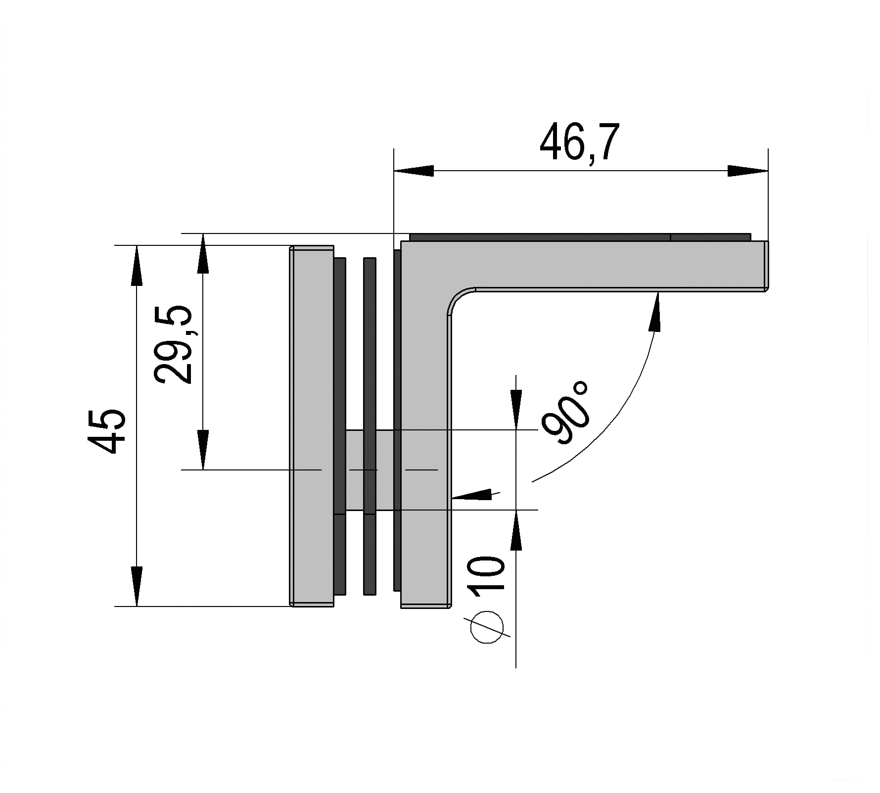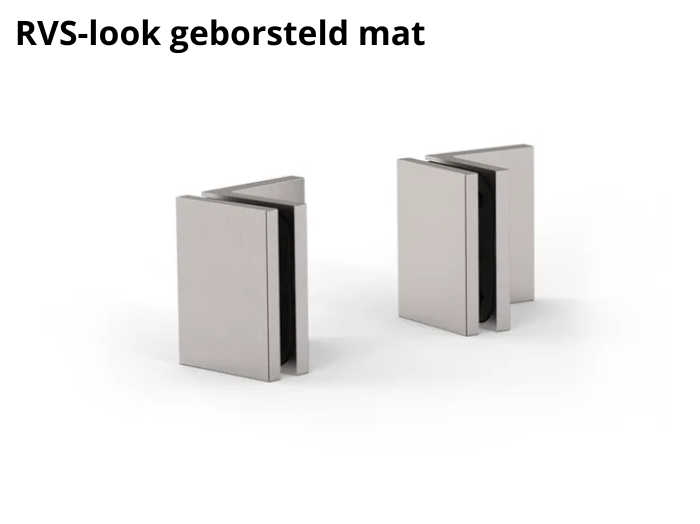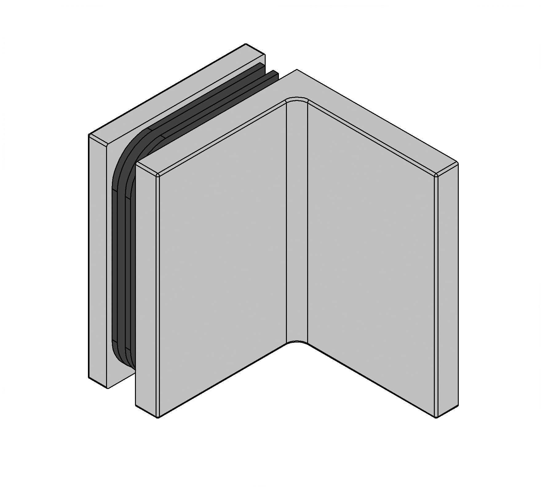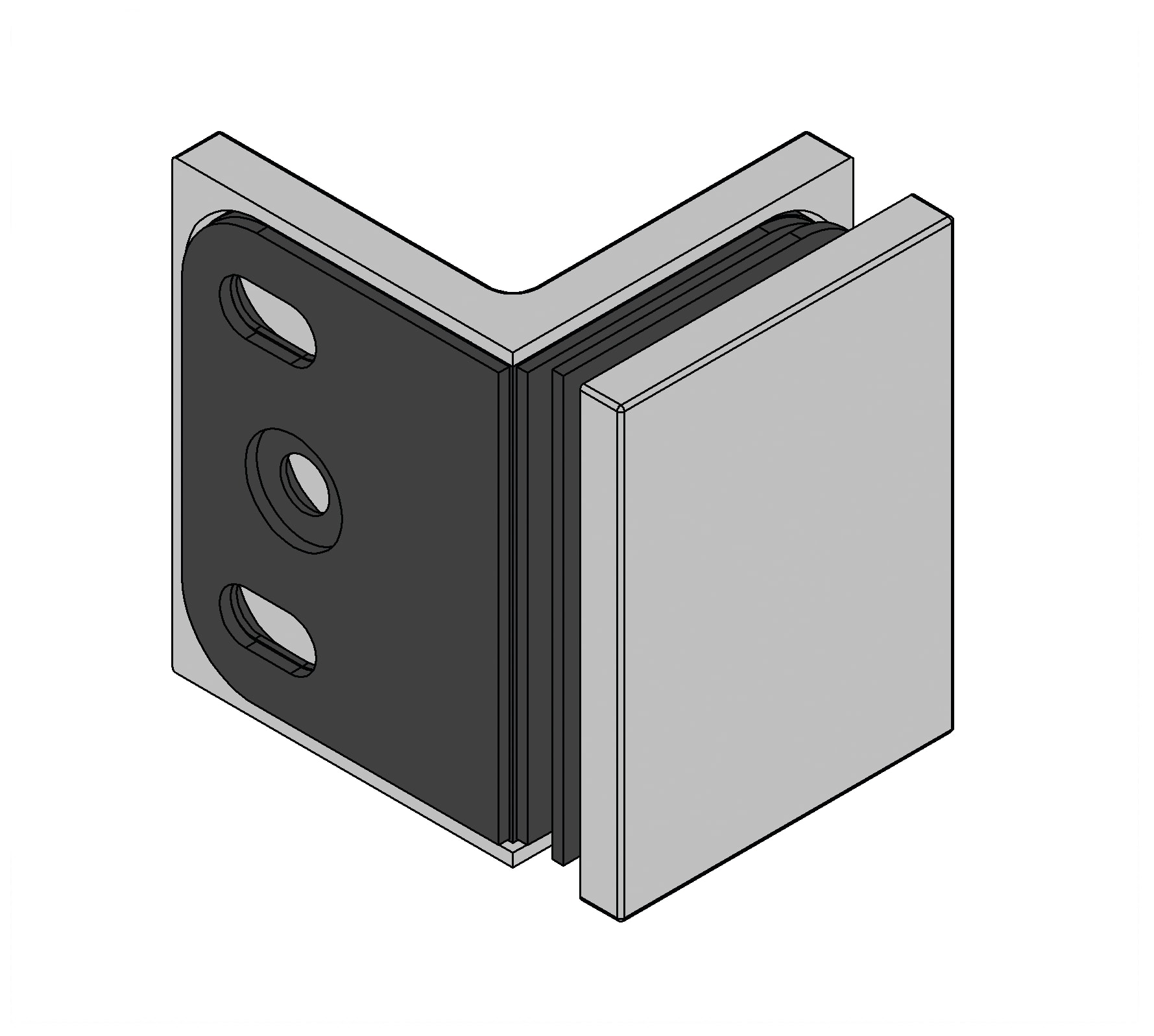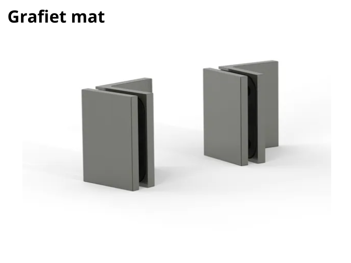 Deze verbinder maakt het mogelijk om een vast glazen zijpaneel in een hoek van 90 graden aan een muur te bevestigen. De bevestiging is eenvoudig en vereist alleen basisboringen in het glas, wat de montage snel en overzichtelijk maakt.