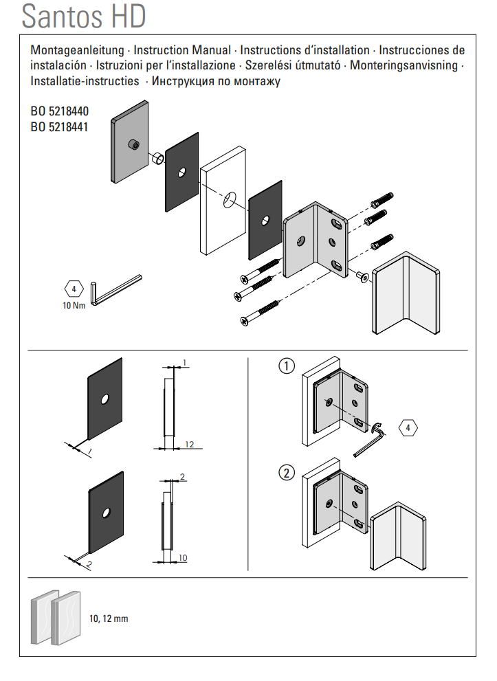 - Glasdikte ESG (enkelvoudig veiligheidsglas): 10 – 12 mm