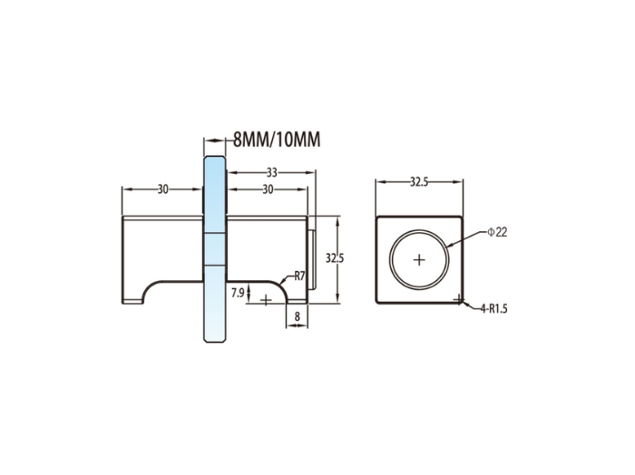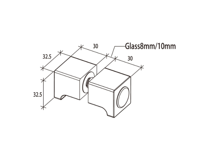 Douchedeurknop 32 x 32mm dubbelzijdig met bumpers