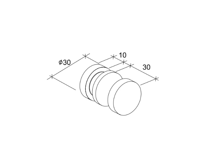 Enkelzijdige douchedeurknop rond 30mm Ø