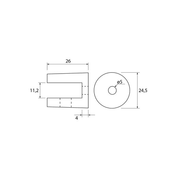 Speciaal ontworpen voor glasdiktes van 6 tot 8 mm, levert deze glasplaatdrager stevige ondersteuning voor diverse glazen platen. Met een bescheiden diameter van 25 mm en een lengte van 26 mm blijft het discreet en evenwichtig in uw ontwerp.
