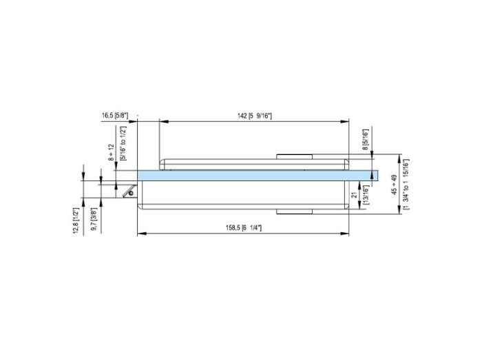 Dit loopslot is geschikt voor glazen deuren met een aanslag (het is een deur die tegen een kozijn of sluitlijst sluit, waarbij de rand van de deur (de aanslag) tegen het vaste frame komt te liggen als de deur dicht is). Het slot kan worden toegepast bij glasdiktes van 8 tot 10 mm. Dankzij het ontwerp sluit het slot netjes aan op het glas en past het goed in zowel moderne als zakelijke interieurs.