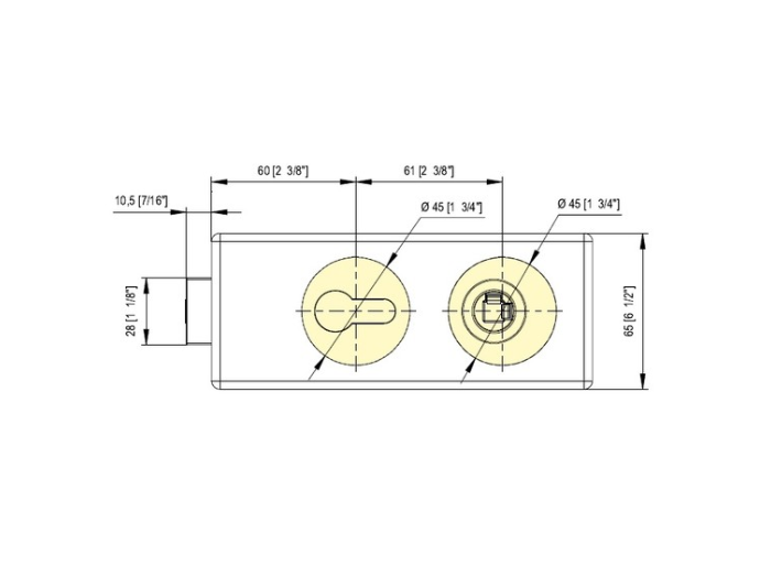 - Diameter krukgat en cilindergat: Ø 45 mm