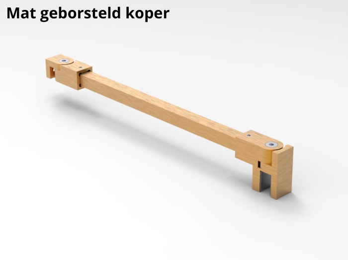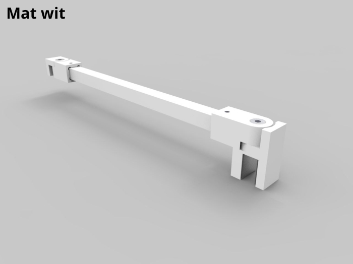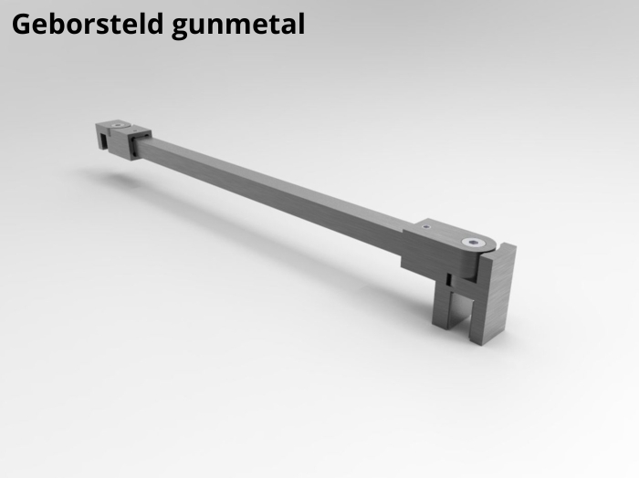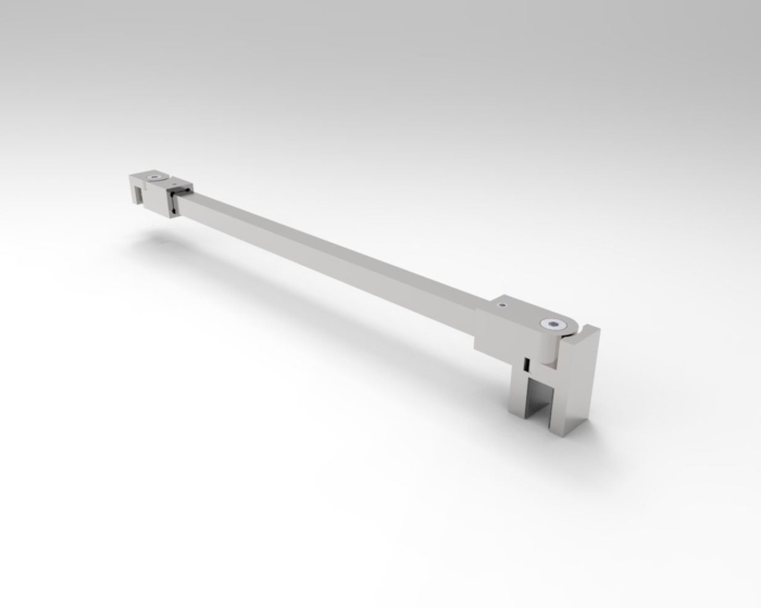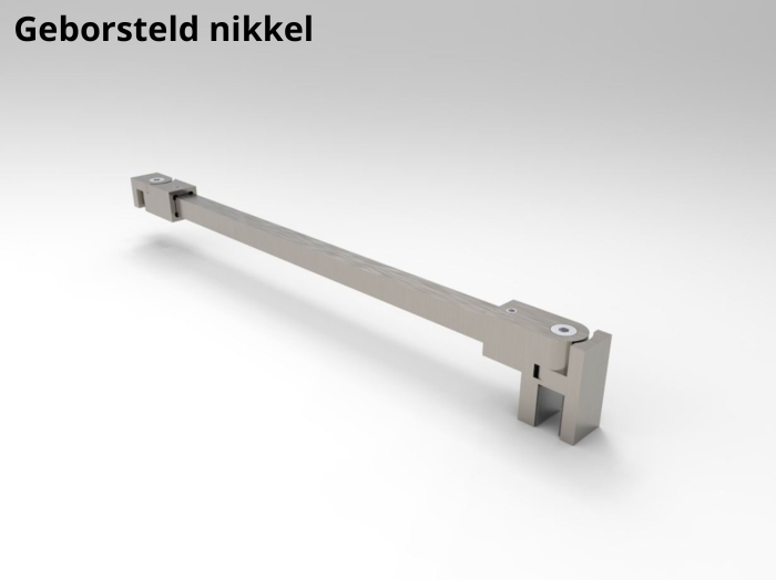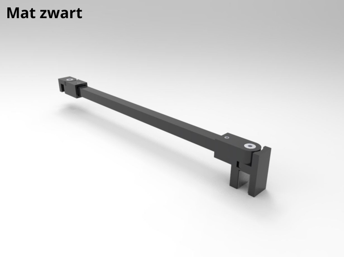 De set is geschikt voor 8 – 10 mm glas en wordt compleet geleverd met een verstelbare glasaansluiting en een verstelbare slim-line wandaansluiting. Hierdoor kan de stabilisatiestang eenvoudig worden aangepast aan de gewenste montagehoek. Glasbewerking is niet nodig, wat zorgt voor een snelle en veilige installatie.