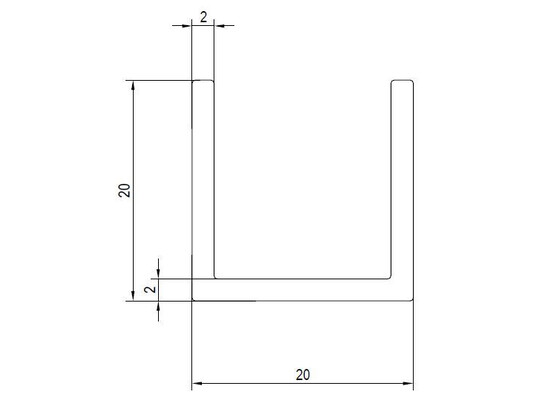 Aluminium U-profiel 20x20x20x2 mm L=6000 mm