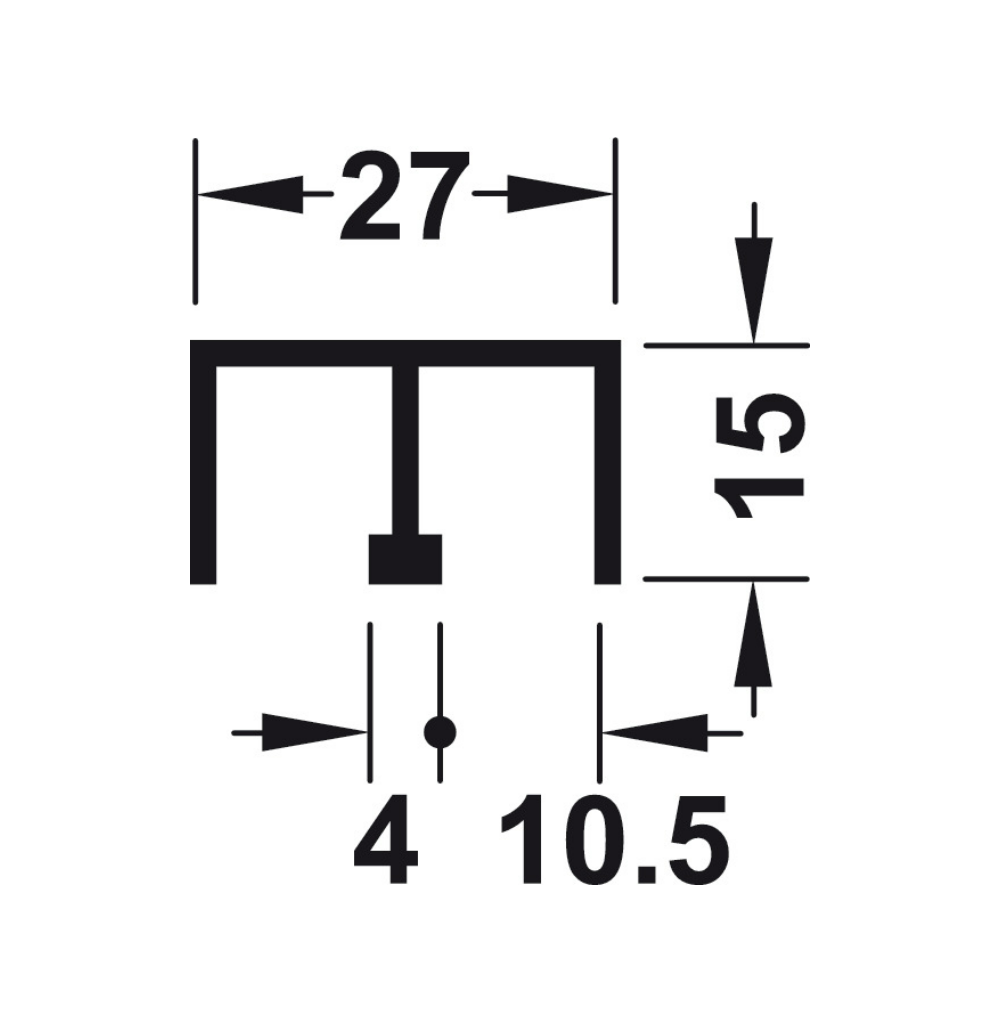 Dubbel geleiderail – Onze aluminium rail, 27 x 15 mm groot, is bedoeld voor bovenmontage.