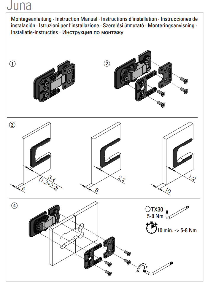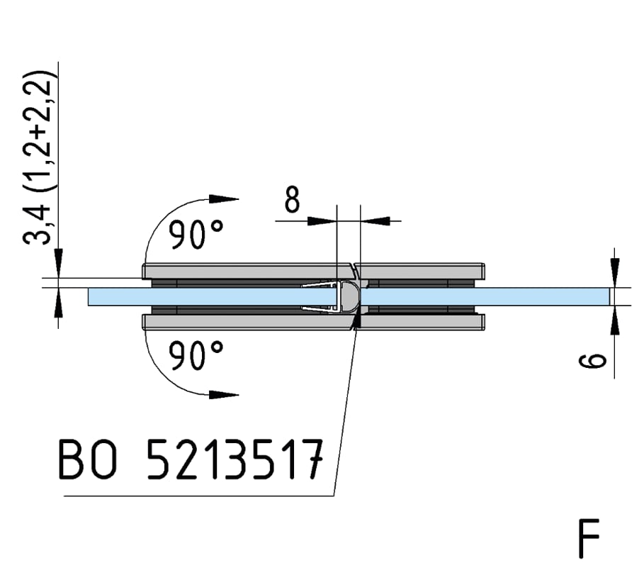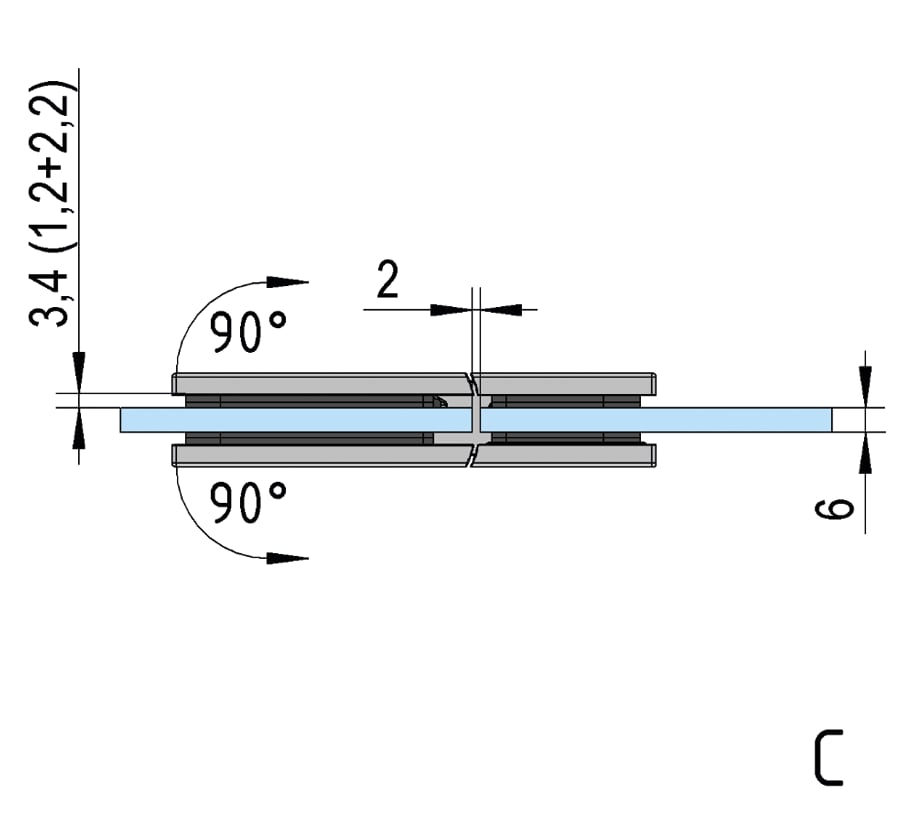 - Glasuitsparing vereist: Ja. “Uitsparing vereist” betekent dat er een specifieke opening/gat in het oppervlak (bijvoorbeeld de wand of het glas) nodig is voor de installatie van het scharnier.