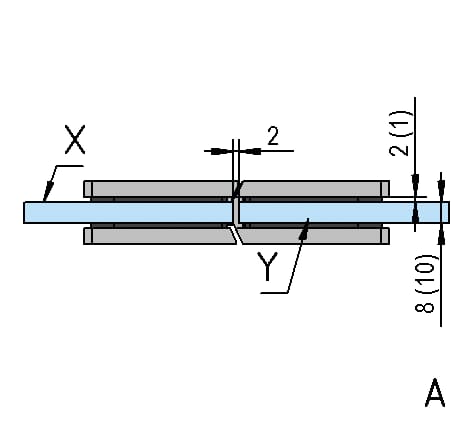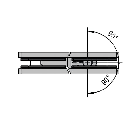 - Speling/ruimte tussen de twee glaspanelen: 2mm indien géén afdichtstrip toegepast wordt. Indien er wel een afdichtstrip toegepast wordt is die ruimte doorgaans groter. De afstand tussen de twee glaspanelen noemen we de draaispeling. Dit zorgt ervoor dat de panelen niet direct tegen elkaar aan zitten, wat ruimte biedt voor het scharnier om soepel te draaien en voorkomt dat het glas schuurt of beschadigt.