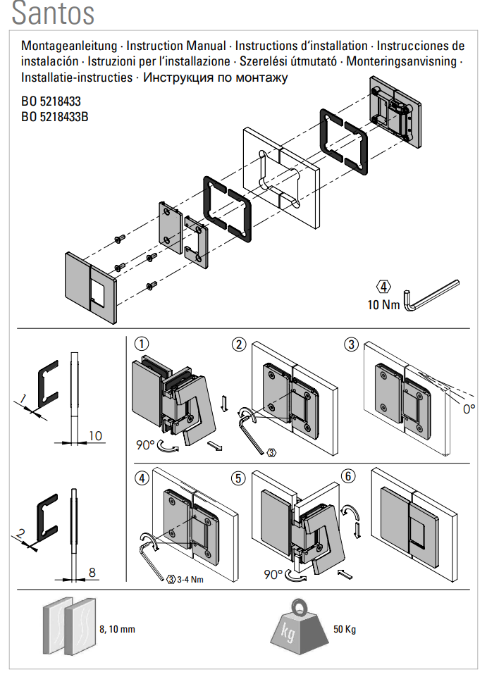 Douchedeur scharnier Santos glas/glas 180° – per 2 stuks