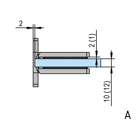 - Speling/ruimte tussen wand en glaspaneel: 2 mm. Dit houdt in dat wanneer het scharnier in de nulpositie staat, er een ruimte is tussen de het glas en de muur van 2 mm. Dit zorgt ervoor dat de panelen niet direct tegen elkaar aan zitten, wat ruimte biedt voor het scharnier om soepel te draaien en voorkomt dat het glas tegen elkaar schuurt of beschadigt.