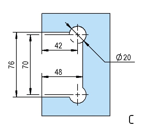 - Glasuitsparing vereist: Ja, boorgatdiameter van 20 mm. “Uitsparing vereist” betekent dat er een specifieke opening/gat in het oppervlak (bijvoorbeeld de wand of het glas) nodig is voor de installatie van het scharnier.