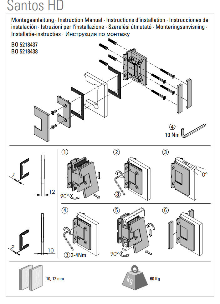 - Glasdikte ESG (enkelvoudig veiligheidsglas): 10 – 12 mm