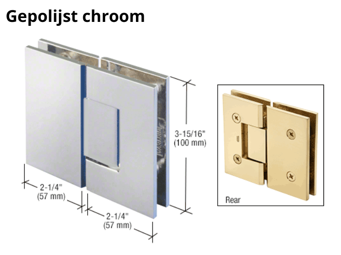 - Openingshoek: Het scharnier maakt het mogelijk om de douchedeur 90° naar beide zijden te openen.