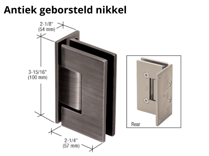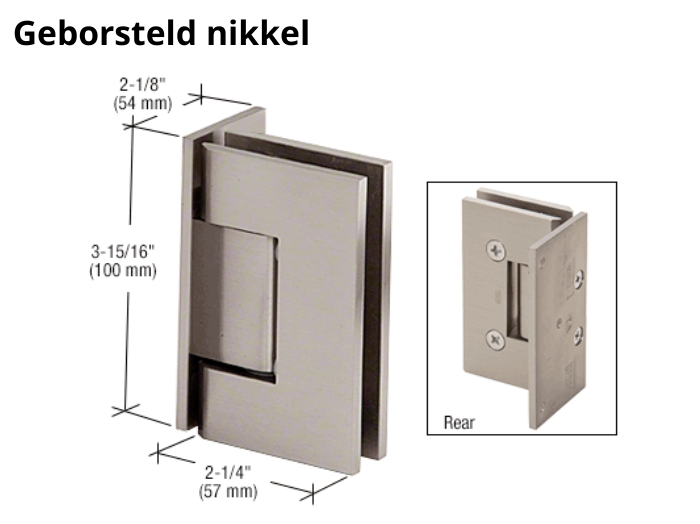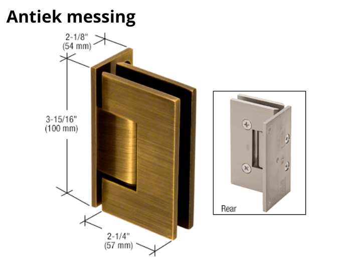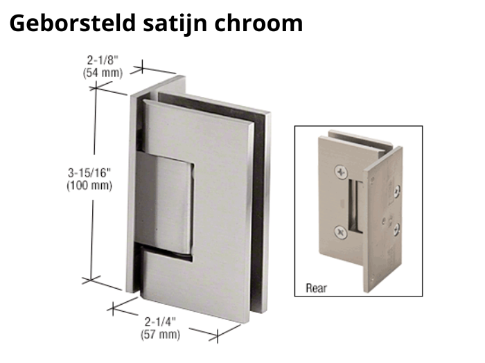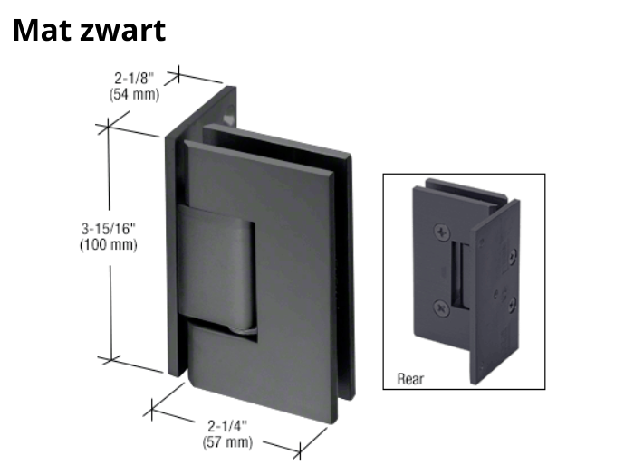 - Maximale deurbreedte en gewicht: Ondersteunt douchedeuren tot 864 mm (voor 10mm glas) en 813 mm (voor 12mm glas) en een maximaal deurgewicht van 50 kg (per 2 scharnieren). Let op, onder maximale deurbreedte verstaan we de horizontale maat van het glas zelf, niet de horizontale maat inclusief scharnieren, afdichtprofielen of verpakkingen.