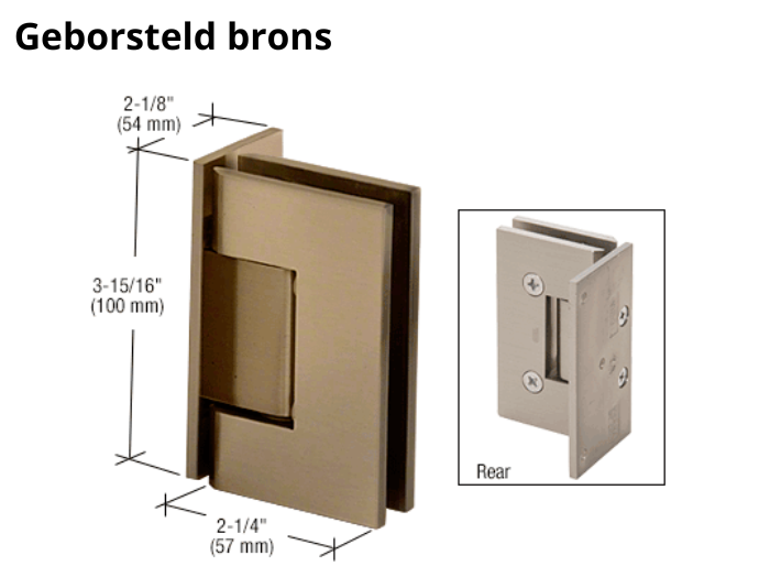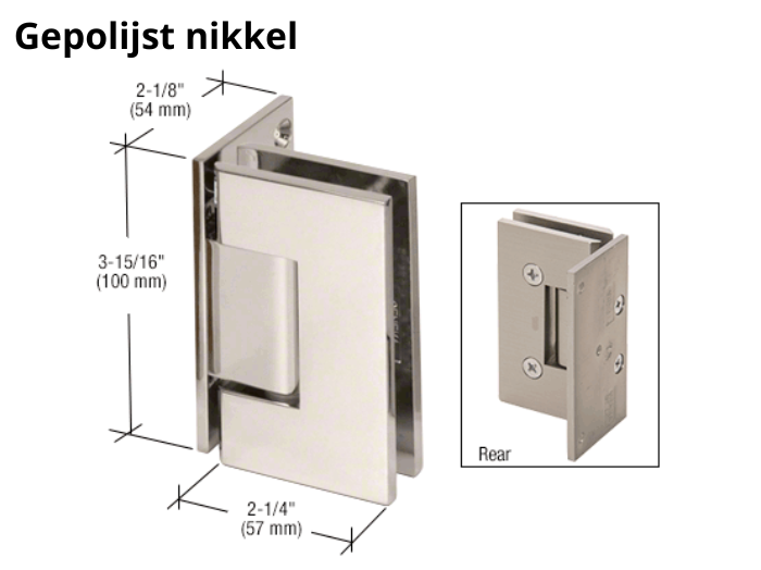 - Enkelzijdige montageplaat: Deze maakt het mogelijk om de douchedeur op de hoek van een muur te monteren. Er zitten maar aan één kant van het scharnier schroeven.