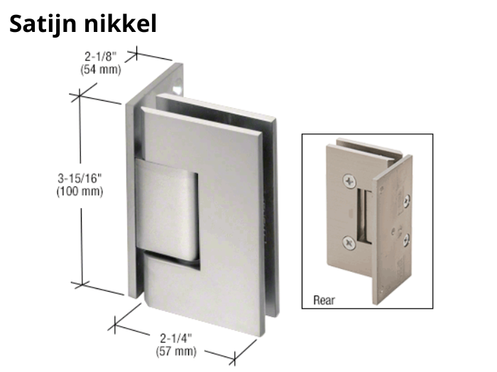 Douchedeur scharnier Vienna 90° wand/glas verlegde muurplaat