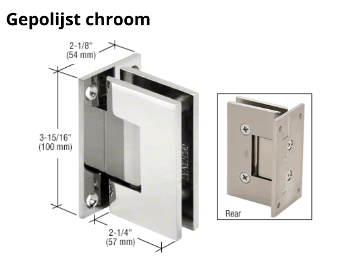 - Maximale deurbreedte en gewicht: Ondersteunt douchedeuren tot 914 mm breed en een maximaal deurgewicht van 50 kg (per 2 scharnieren). Let op, onder maximale deurbreedte verstaan we de horizontale maat van het glas zelf, niet de horizontale maat inclusief scharnieren, afdichtprofielen of verpakkingen.