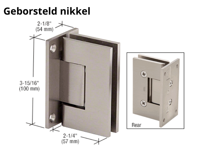 - Glasuitsparing vereist: Ja, boorgatdiameter van 12 of 16 mm. “Uitsparing vereist” betekent dat er een specifieke opening/gat in het oppervlak (bijvoorbeeld in de wand of het glas) nodig is voor de installatie van het scharnier.