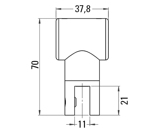Glasverbinder met doorvoeropening voor plaatsing op een stabilisatiestang. De klem wordt bevestigd aan de bovenzijde van een vast glazen zijpaneel en kan vrij over de lengte van de stang worden verschoven.