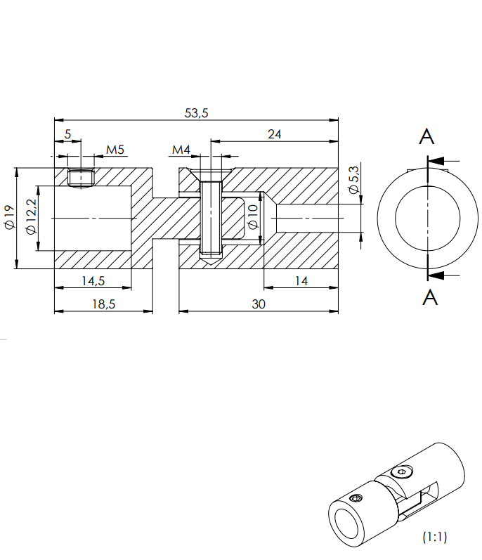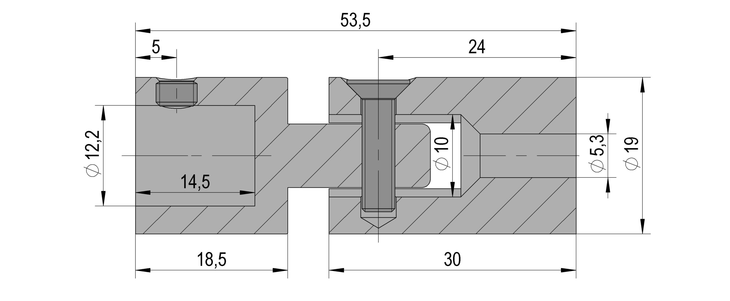 - Glasaansluiting stabilisatiestang Round 12 met glasboring: art nr. BO5213678