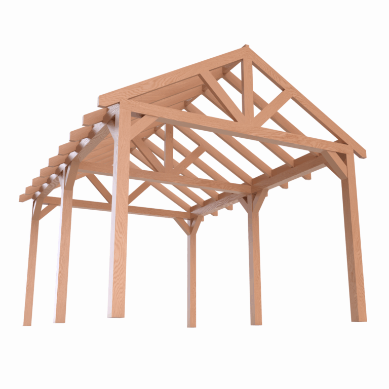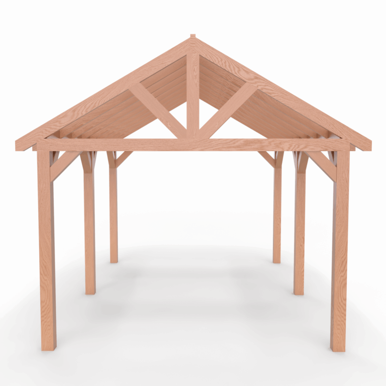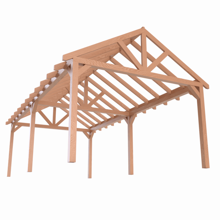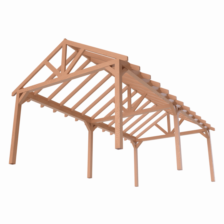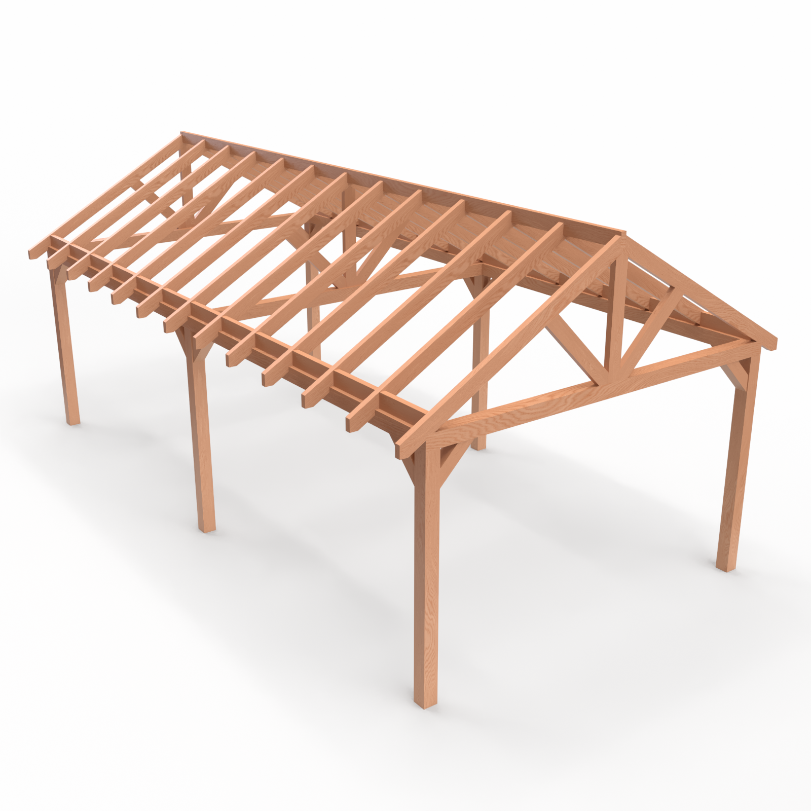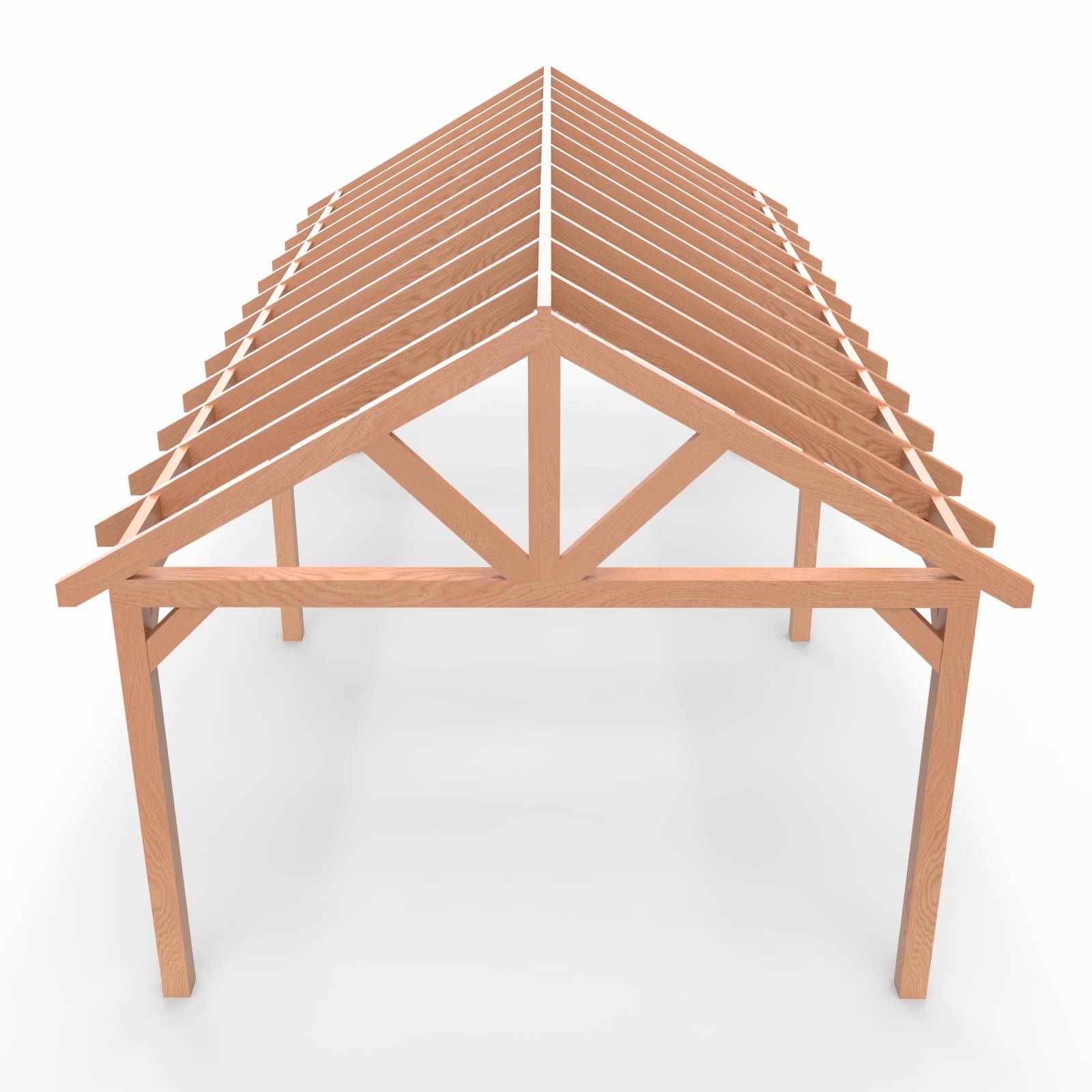 Belangrijk om te weten: dit pakket bevat alleen de houten onderconstructie. Je ontvangt de complete draagconstructie van Douglas hout, inclusief alle noodzakelijke inkepingen en het bevestigingsmateriaal voor een eenvoudige montage. Dakbedekking en zijwanden zijn niet inbegrepen, zodat je volledige vrijheid hebt om je overkapping af te werken zoals jij dat wilt. Onze experts adviseren je graag over de mogelijkheden voor de fundering.