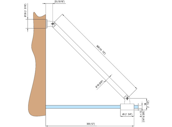 - Plaatsing: Onder een hoek van 45° tussen muur en glaspaneel